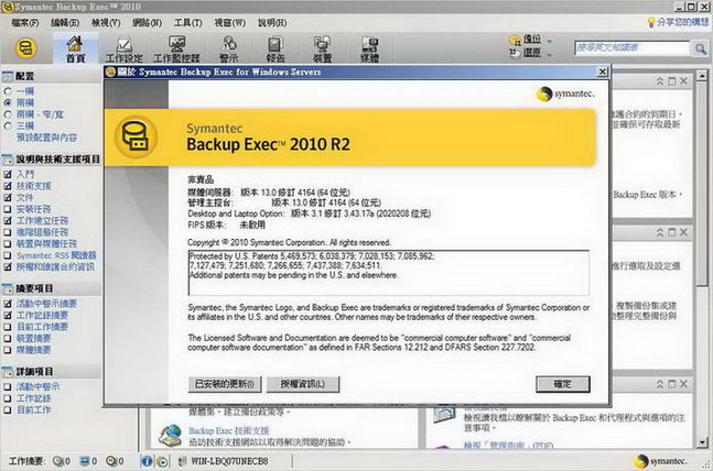 Symantec Backup Exec 2010-簡稱:BE2010。提供全新的技術,能將賽門鐵克領先業界的安
