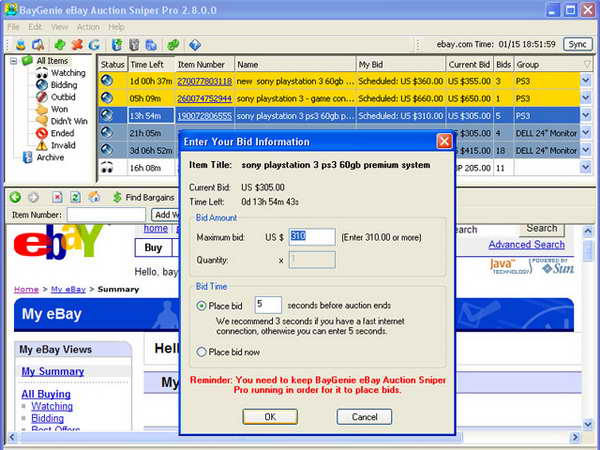 列表,並設定在拍賣結束之前多久出價,剩下的就是去放鬆或作別的事。