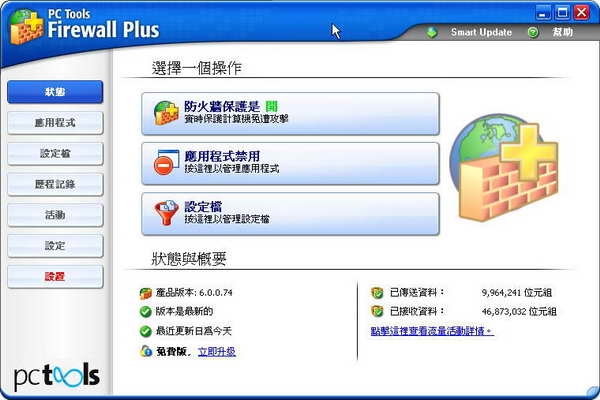 好用的防火牆PC Tools Firewall Plus 6.0 繁體中文版