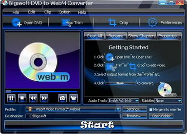 Bigasoft DVD to WebM Converter 是第一款DVD到WebM轉換軟體。它易於使用,