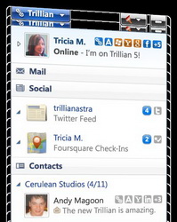 Trillian是一款高度集成的聊天用戶端軟體,目前支援IRC、AIM、ICQ、MSN和Yahoo Messenger。